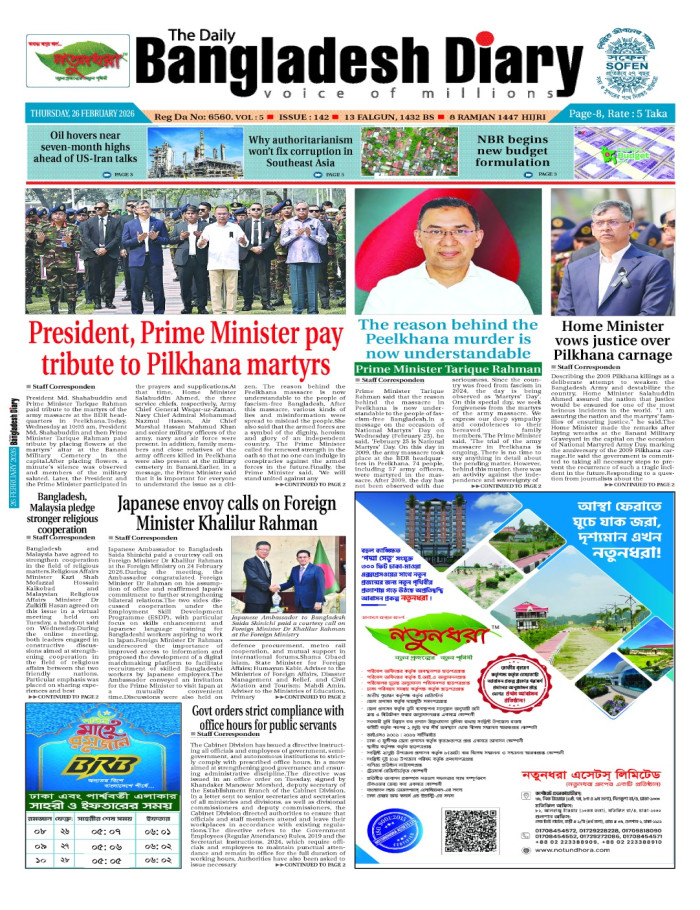 বৃহস্পতিবার, ২৬ ফেব্রুয়ারী ২০২৬