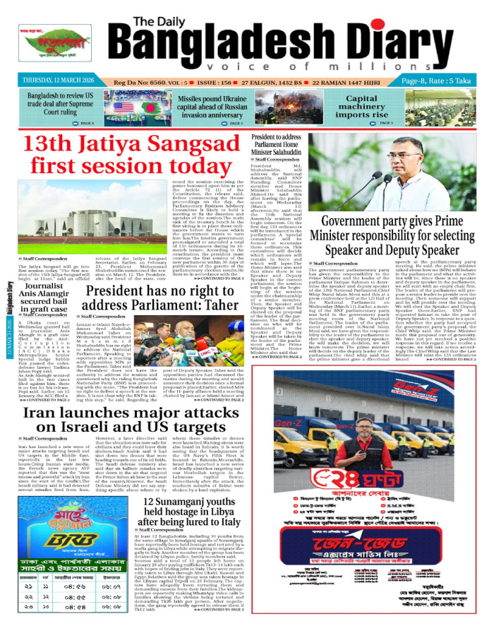 বৃহস্পতিবার, ১২ মার্চ ২০২৬